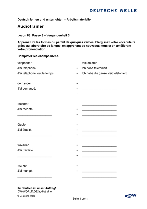 Apprenez ici les formes du parfait de quelques verbes. Elargissez votre vocabulaire grâce au laboratoire de langue, en apprenant de nouveaux mots et en améliorant votre prononciation.