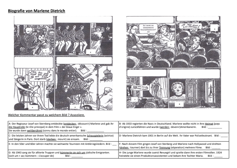 II) Dans la BD sur la vie de Marlene Dietrich, trouver les verbes conjugués et les classer en deux catégories.